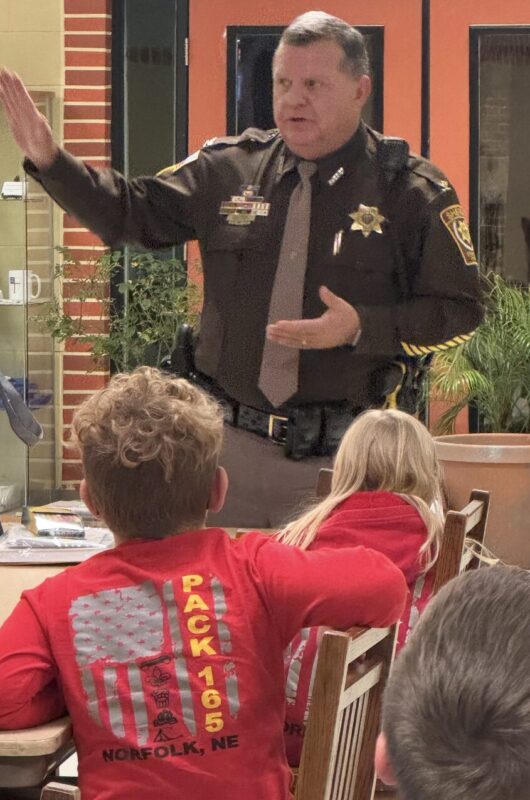 Also this past Monday evening, Sheriff Unger presented a program to Scouts Pack #165 of Norfolk at the Norfolk Episcopal Church about the duties of the Sheriff’s Office and Vehicle Safety among other law enforcement topics.